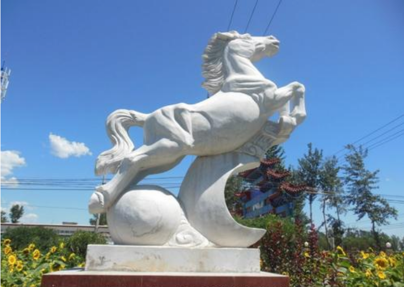 龍馬精神是中華民族自古以來所崇尚的奮斗不止、自強不息的進取、向上的民族精神。祖先們認為,龍馬就是仁馬,它是黃河,也是我們母親灑的精靈,是炎黃子孫的化身,代表了華夏民族的主體精神和最高道德。馬身高八尺五寸,長長的頸項,顯得偉岸無比。骨骼生有翅翼,翼的邊緣有一圈彩色的鬃毛,引頸長嘯,發出動聽的和諧的九音。這是多么神采駿逸的形象,多么瀟灑昂揚的身姿。祖先們在世界觀里已經把馬等同于純陽的乾,它是剛健,明亮、熱烈、高昂、升騰、飽滿、昌盛、發達的代名詞。馬是在的象征,又代表著君王、父親、大人、祖考、金玉、敬畏、威嚴、健康、善良、遠大、原始、生生不息。馬又是能力、圣賢、人才、有作為的象征。古人常常以"千里馬"來比擬。千里馬是日行千里的優秀駿馬。相傳周穆王有八匹駿馬,常常駕著他巡游天下。八駿的名稱:一個叫絕地,足不踐土,腳不落地,可以騰空而飛;一個叫翻羽,可以跑得比飛鳥還快;一個叫奔菁,夜行萬里;一個叫超影,可以追著太陽飛奔;一個叫逾輝,馬毛的色彩燦爛無比,光芒四射;一個叫挾翼,身上長有翅膀,象大鵬一樣展翅翱翔九萬里。有的古書把"八駿"想象為八種毛色各異,美化美奐的稚匹美麗的馬群,分別有很好聽的名字:赤驥、盜驪、白義、逾輪、山子、渠黃、驊騮、綠耳。其實,馬雕塑的神奇傳說都是在形容賢良的人才,切莫真的信為神話。周穆王的八駿其實比喻著他的人才集團,才華卓具,本領非凡,各自用特殊的能力在共同輔佐周天子的天下大業。